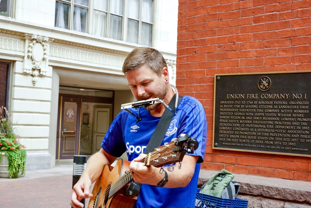 On Sept. 18, 2021, an employee at Ream Jewelers in Lancaster City, PA, decorates the shop for the fall season. (Photo/Chad Barthe)Ryan Brown, 30, poses while stocking the freezer at the Costco Wharehouse in Lancaster, PA., on Oct. 8, 2021. Ryan began working at Costco in 2011 before joining the army and being stationed at Fort Campbell, Kentucky. In 2016, he was allowed to return to work at Costco under its military leave program. (Photo/Chad Barthe)Kevin Barthe, 54, takes his day off on Oct. 8, 2021, to fix his chicken coop at his home in Elizabethtown, PA. Kevin has worked as a quality assurance specialist at Hershey’s Reese’s plant since 2009. (Photo/Chad Barthe)Central York’s Quarterback Beau Pribula (1) passes the ball to receiver Parker Hines (5) for a successful first down in their game against Manheim Township on Nov 5, 2021. In August of 2020, Pribula committed to Penn State ahead of his Junior year. (Photo/Chad Barthe)On Sept. 24, 2021, a motorcyclist narrowly swerves through traffic to get onto Franklin and Marshall Campus in Lancaster City, PA. (Photo/Chad Barthe)On Sept. 24, 2021, a construction worker takes a smoke break while working on Buchanan Avenue in Lancaster City, PA.Local musician Aaron Pearson plays outside the Lancaster City Market on Oct. 22 Anchor End. (Photo/ Chad Barthe) On Oct. 2, 2021, Joshua Naylor, 29, relaxes with his wife Elysha, 31, in Lancaster City, PA, before heading to work at Costco Wholesale. After working within the company for over a decade, he recently took a position in the tire shop. (Photo/Chad Barthe)